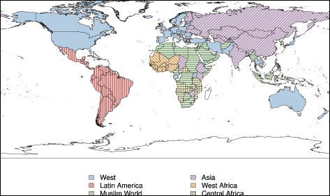 De onderzoekers detecteerden zes verschillende machtsblokken: het Westen, Azië, de islamitische wereld, Latijns-Amerika, West Afrika en Centraal Afrika. Anders dan Huntington had voorspeld zijn China en Japan geen aparte machtsblokken maar behoren ze respectievelijk tot Azië en het Westen, en is er een duidelijke afbakening van West Afrika ten opzichte van de rest van Afrika. Er zijn ook opmerkelijke uitzonderingen: Zuid-Korea en Zuid-Afrika zijn bij de Islamitische wereld ingedeeld, Iran bij het Westen en Finland bij Azië.